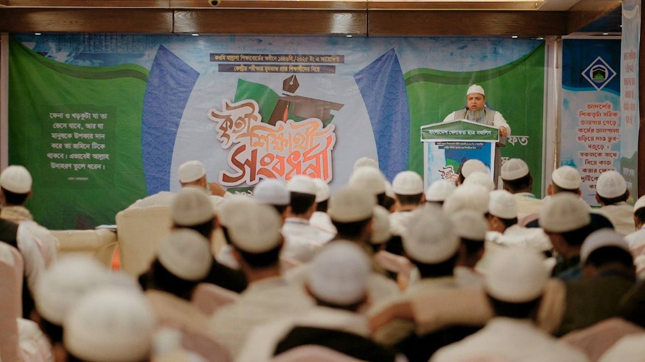 শুক্রবার (২৮ নভেম্বর) রাজধানীর শেওড়াপাড়ার মেহফিল কনভেনশন হলে বাংলাদেশ খেলাফত ছাত্র মজলিস ঢাকা মহানগর পশ্চিমের উদ্যোগে বাংলাদেশ কওমি মাদরাসা শিক্ষা বোর্ড ও ইত্তেফাকুল মাদারিসিল কওমিয়া মোহাম্মদপুর-এর কেন্দ্রীয় পরীক্ষায় মুমতাজ (A+) প্রাপ্ত শিক্ষার্থীদের সংবর্ধনা উপলক্ষে এক বর্ণাঢ্য কৃতি শিক্ষার্থী সংবর্ধনা অনুষ্ঠান অনুষ্ঠিত হয়।