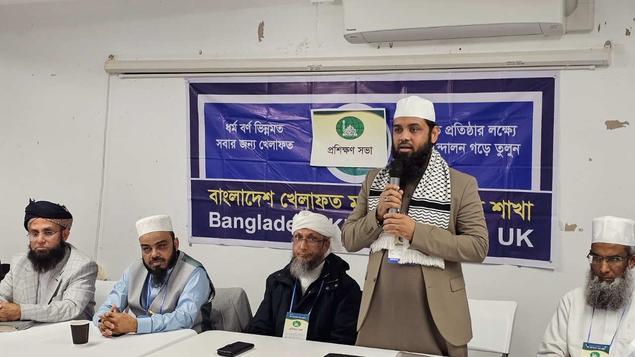 বাংলাদেশ খেলাফত মজলিস যুক্তরাজ্য শাখার উদ্যোগে বাছাইকৃত দায়িত্বশীলদের নিয়ে রোববার (৩০ নভেম্বর) দারুল উলুম ফোর্ডস্কোয়ার কনফারেন্স হলে প্রশিক্ষণ সভা অনুষ্ঠিত হয়।