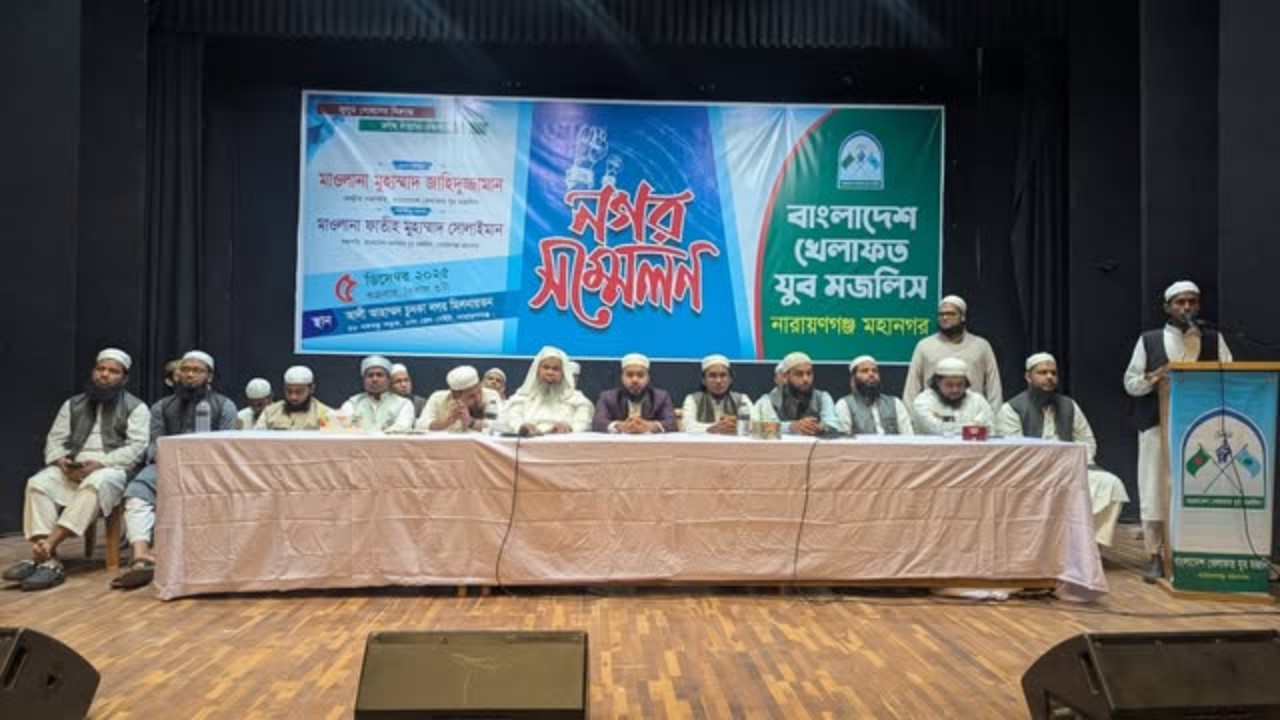 বাংলাদেশ খেলাফত যুব মজলিস নারায়ণগঞ্জ মহানগর সভাপতি মাওলানা ফাতীহ মুহাম্মদ সোলাইমানের সভাপতিত্বে ও প্রকাশনা বিভাগের সম্পাদক হাফেজ রিয়াদ হাসান এর সঞ্চালনায় নগর সম্মেলনে প্রধান অতিথি হিসেবে উপস্থিত ছিলেন সংগঠনের কেন্দ্রীয় সভাপতি মাওলানা মুহাম্মদ জাহিদুজ্জামান।