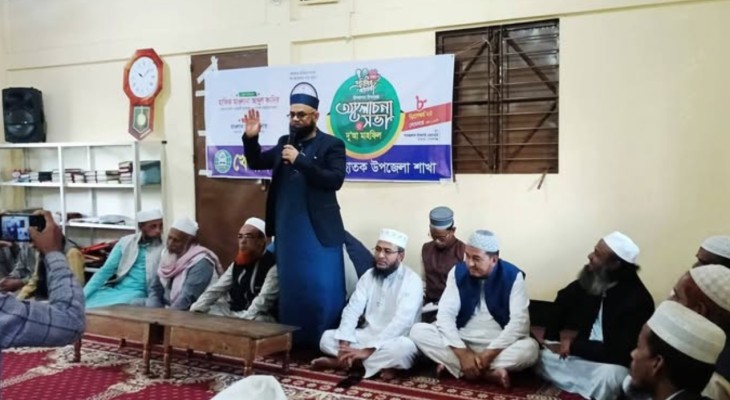 হাফেজ কারীমুল ইসলামের সভাপতিত্বে ও মোঃ ইসমাইল হোসেনের পরিচালনায় সভায় বিশেষ অতিথির বক্তব্য রাখেন খুলনা ১ আসন হাতপাখার প্রার্থী ও জেলা সহ সভাপতি আলহাজ্ব মাওলানা আবু সাইদ মহানগর সেক্রেটারি মুফতি ইমরান হোসাইন জেলা সেক্রেটারি এসএম রেজাউল করিম সরদার,সেক্রেটারি দ্বীন কায়েম সংগঠন মাওলানা ওমর ফারুক হাফেজ মাওলানা মুফতি আশরাফুল ইসলাম মোণ মোমিন ইসলাম নাসিব, আলহাজ্ব মোঃ শফিকুল ইসলাম হাফেজ জাহিদুর রহমান মোঃ শাকিল আহমাদ রাসেল, মোঃ রহমত আলী,মাওলানা দ্বীন ইসলাম আলহাজ্ব নজরুল ইসলাম আলহাজ্ব আবু দাউদ শেখ হাফেজ ওসমান করিম, মাওঃ এনামুল হক বেলালী প্রমুখ।