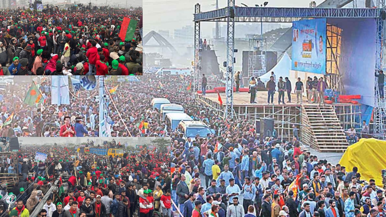 মূলত বুধবার থেকেই রাজধানীর কুড়িল-পূর্বাচল ৩০০ ফুট এলাকায় নির্মিত সংবর্ধনা মঞ্চের সামনে অবস্থান নিতে শুরু করেন নেতাকর্মীরা। জাতীয় ও দলীয় পতাকা, স্লোগান ও প্ল্যাকার্ডে পুরো এলাকা উৎসবমুখর হয়ে ওঠে চারপাশের পরিবেশ।