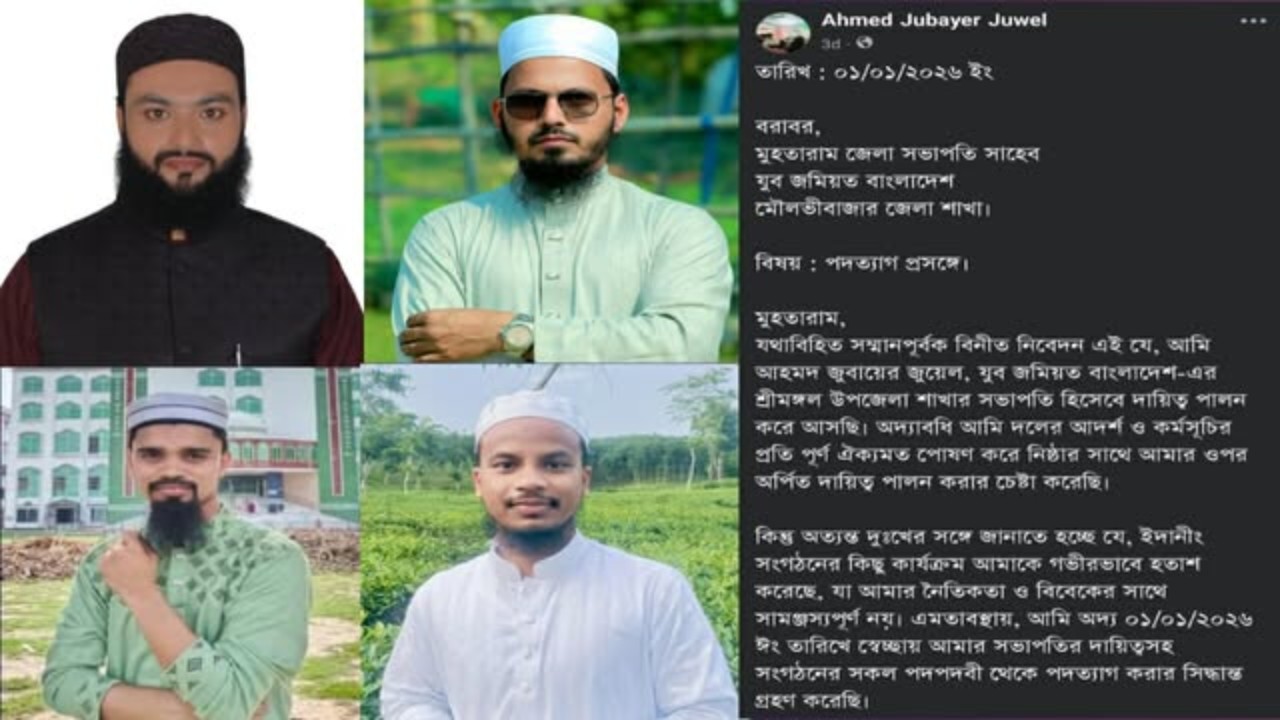 পদত্যাগকারীদের মধ্যে রয়েছেন যুব জমিয়ত শ্রীমঙ্গল উপজেলা শাখার সভাপতি মাওলানা আহমদ জুবায়ের জুয়েল, সহসভাপতি মাওলানা সোলাইমান আহমদ, সহ-যুগ্ম সাংগঠনিক সম্পাদক আব্দুর রউফ আল হাসান এবং সহ প্রশিক্ষণ সম্পাদক মাওলানা তারেক জামীল।