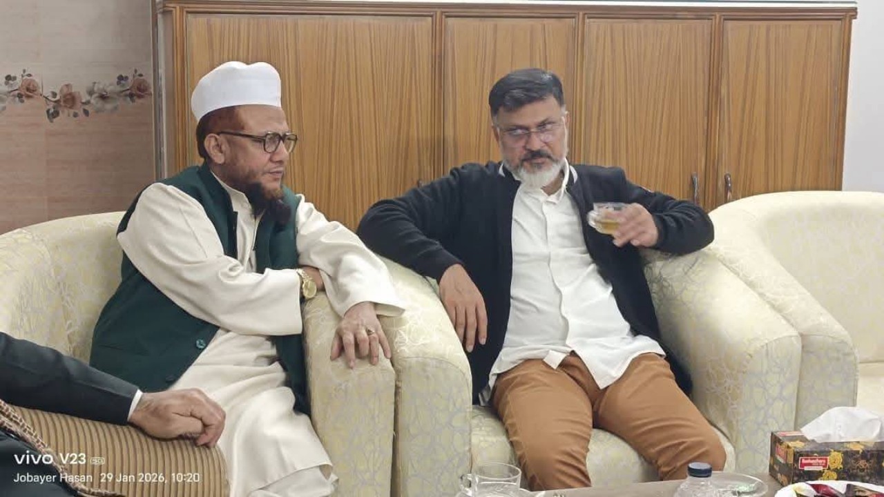 জমিয়ত নেতার সঙ্গে ধানের শীষ প্রার্থী মিল্টনের সৌজন্য সাক্ষাৎ