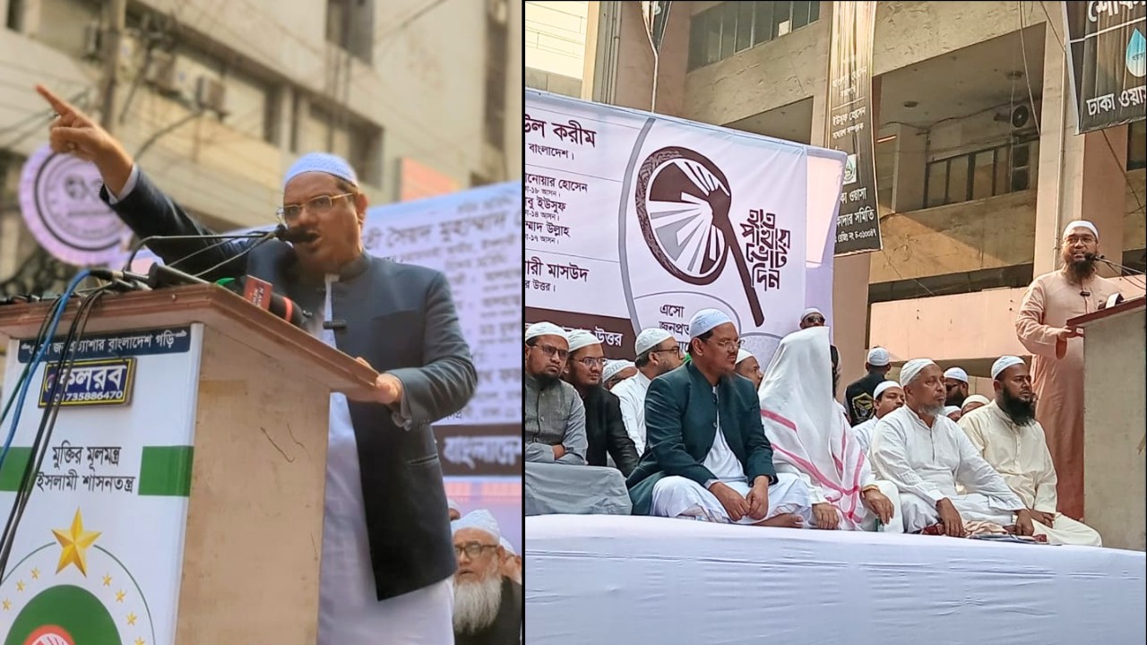ইসলামী আন্দোলন বাংলাদেশের আমির মুফতি সৈয়দ মুহাম্মাদ রেজাউল করীম, পীর সাহেব চরমোনাই বলেছেন, ৯০ ভাগ মুসলমানের দেশ ইসলাম অনুসারে চলবে এটাই স্বাভাবিক। কিন্তু ইসলামের কথা বললেই একদল ভয় দেখায়। দুর্নীতিবাজ, চাঁদাবাজ ও সন্ত্রাসীরা দুর্নীতি, চাঁদাবাজি ও সন্ত্রাসী করতে পারবে না বলেই ইসলামী শাসন সম্পর্কে ভীতি ছড়ায়। আসলে ইসলামী শাসনের অধিনের মানুষ সত্যিকারের শান্তিতে ছিল। বাংলাদেশেও চরমোনাইতে অমুসলিমরা মায়ের কোলের মতো নিরাপদে আছে বলে সাক্ষ্য দিচ্ছে। তাই ৫৪ বছরের ব্যর্থতার গ্লানি থেকে মুক্তি পাওয়ার জন্য হাতাপাখা প্রতীকে ভোট দিন। ইনশাআল্লাহ বাংলাদেশ তার কাঙ্ক্ষিত মুক্তি পাবে।