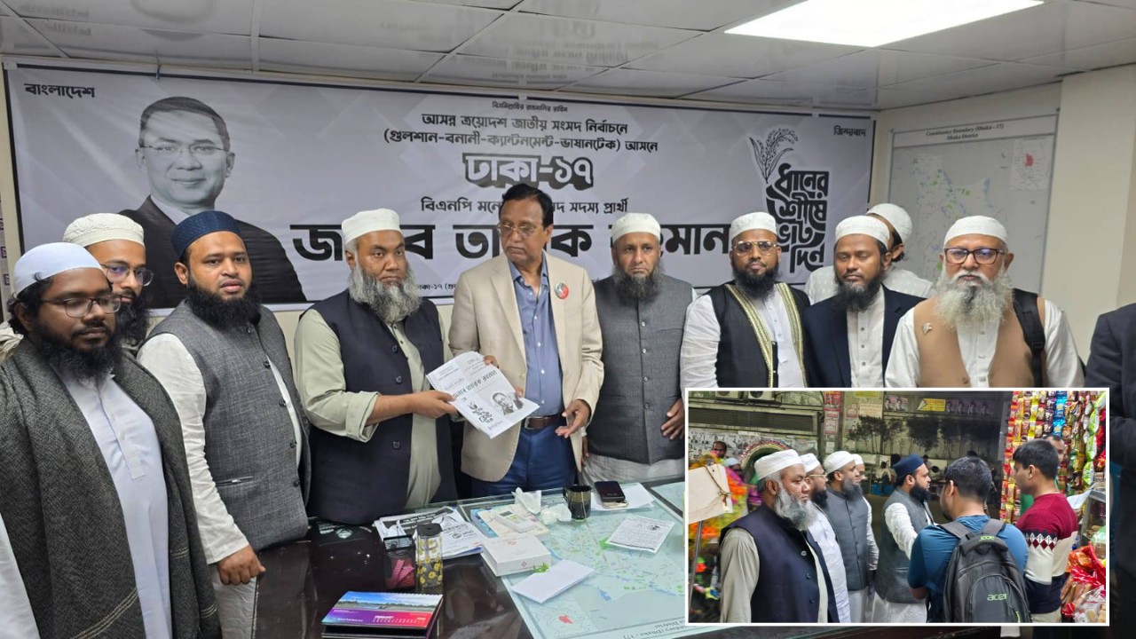 ঢাকা-১৭ আসনে বিএনপির ভারপ্রাপ্ত চেয়ারম্যান তারেক রহমানের পক্ষে ভোট চেয়েছে তরুণ আলেমদের একটি প্রতিনিধি দল।