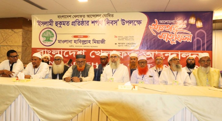 বাংলাদেশ খেলাফত যুব মজলিস ঢাকা মহানগর দক্ষিণের সভাপতি মুহাম্মাদ মিজানুর রহমানের সভাপতিত্বে এবং সহ-সভাপতি মাওলানা ওমর ফারুক মাতুব্বরের পরিচালনায় অনুষ্ঠিত ইফতার মাহফিলে প্রধান অতিথি হিসেবে বক্তব্য প্রদান করেন বাংলাদেশ খেলাফত মজলিসের মহাসচিব মাওলানা জালালুদ্দিন আহমাদ।