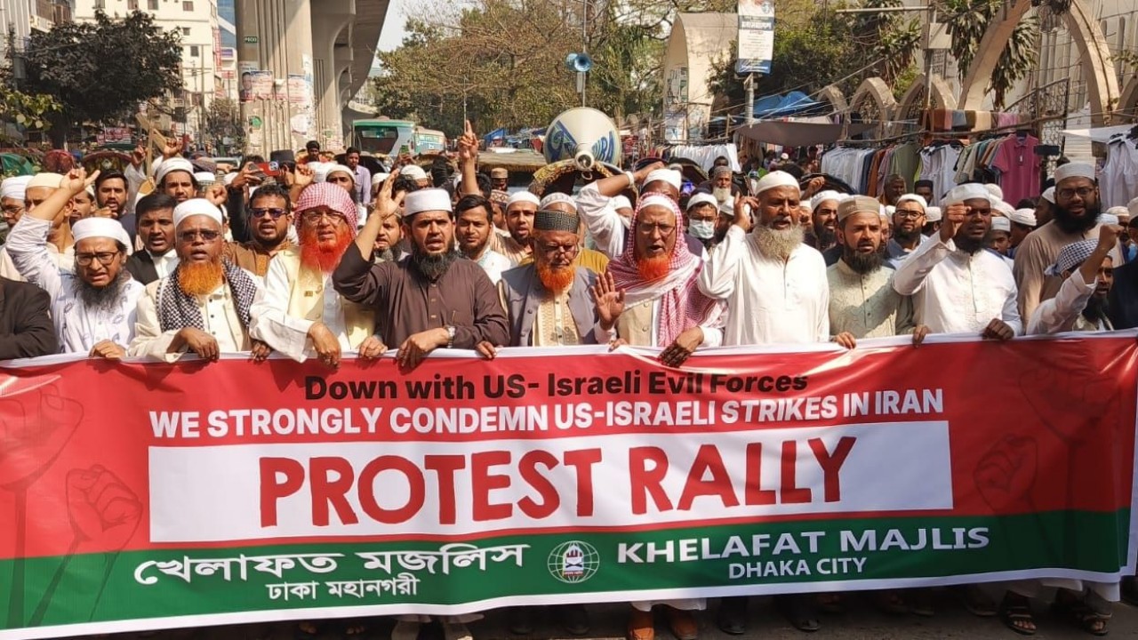 ইরানে হামলার প্রতিবাদে ঢাকায় খেলাফত মজলিসের বিক্ষোভ