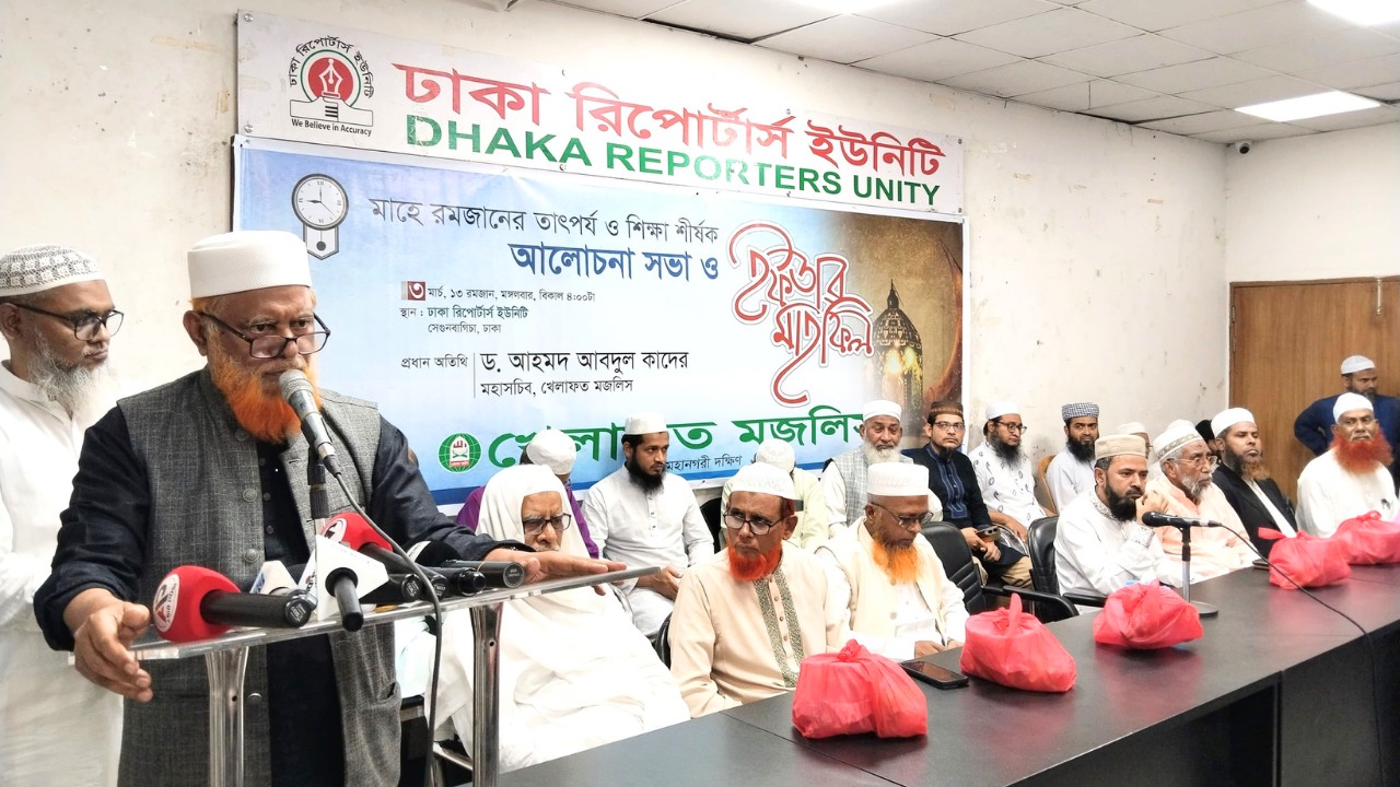 আজ বিকাল ৪টায় ঢাকা রিপোর্টার্স ইউনিটি মিলনায়তনে খেলাফত মজলিস ঢাকা মহানগরী দক্ষিণ শাখার উদ্যোগে আয়োজিত আলোচনা সভা ও ইফতার মাহফিলে বিশেষ অতিথির বক্তব্য রাখেন নায়েবে আমীর মাওলানা আহমদ আলী কাসেমী, যুগ্ম মহাসচিব ডঃ মোস্তাফিজুর রহমান ফয়সাল, অধ্যাপক মো: আবদুল জলিল।