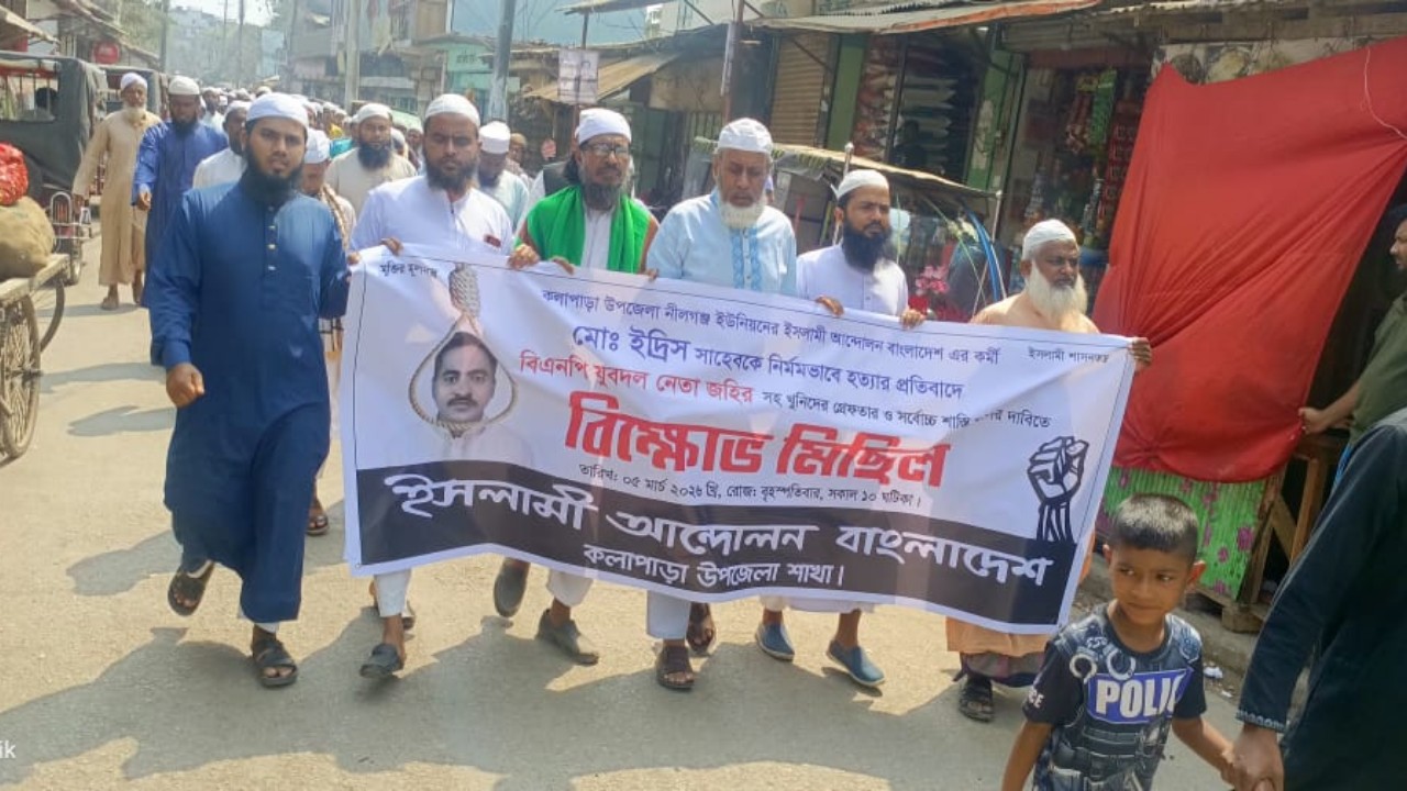 পটুয়াখালীর কলাপাড়ায় শহীদ ইদ্রিস খান হত্যার বিচারের দাবিতে বিক্ষোভ মিছিল করেছে ইসলামী আন্দোলন বাংলাদেশ কলাপাড়া উপজেলা শাখা।