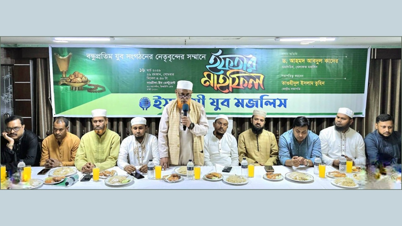 সোমবার (১৬ মার্চ) বিকেলে রাজধানীর নয়াপল্টনস্থ একটি অভিজাত রেস্টুরেন্টে বন্ধুপ্রতিম যুব সংগঠনের নেতৃবৃন্দের সম্মানে ইসলামী যুব মজলিস আয়োজিত ইফতার মাহফিল পূর্ব আলোচনা সভায় খেলাফত মজলিসের মহাসচিব ডক্টর আহমদ আবদুল কাদের প্রধান অতিথির বক্তব্যে এসব কথা বলেন।