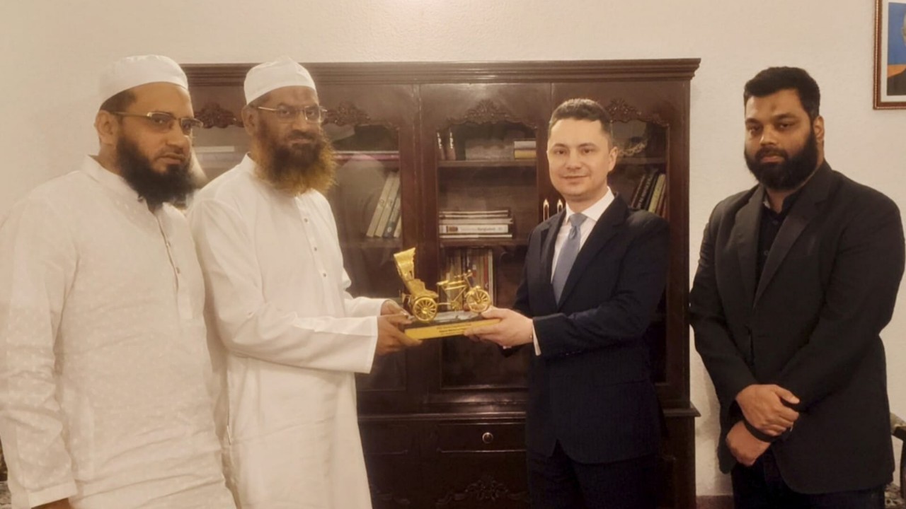 বাংলাদেশ খেলাফত মজলিসের আমির আল্লামা মামুনুল হকের নেতৃত্বে একটি প্রতিনিধিদল রাশিয়ান দূতাবাসের মিনিস্টার কাউন্সেলর ও ডেপুটি চিফ অব মিশন ভিয়াচেস্লাভ সেন্টিউরিনের সঙ্গে সৌজন্য সাক্ষাৎ করেন। বৈঠকে বাংলাদেশ ও রাশিয়ার মধ্যকার দীর্ঘদিনের বন্ধুত্বপূর্ণ সম্পর্ক আরও জোরদার করার বিষয়টি গুরুত্বের সঙ্গে আলোচনা করা হয়। প্রতিনিধিদল বাংলাদেশের প্রতি রাশিয়ার ধারাবাহিক সহযোগিতার জন্য আন্তরিক কৃতজ্ঞতা প্রকাশ করেন।