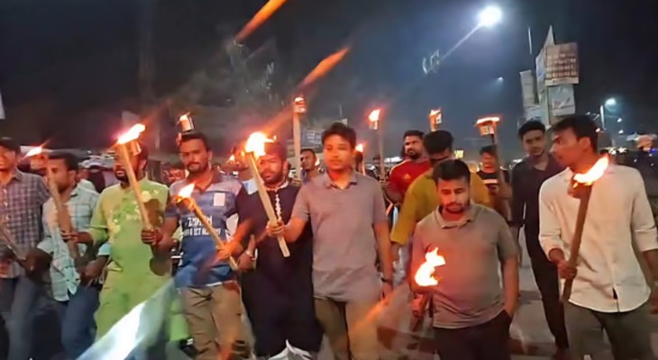 কুড়িগ্রামে তিস্তা মেগা প্রকল্প বাস্তবায়নের দাবি, মশাল মিছিল