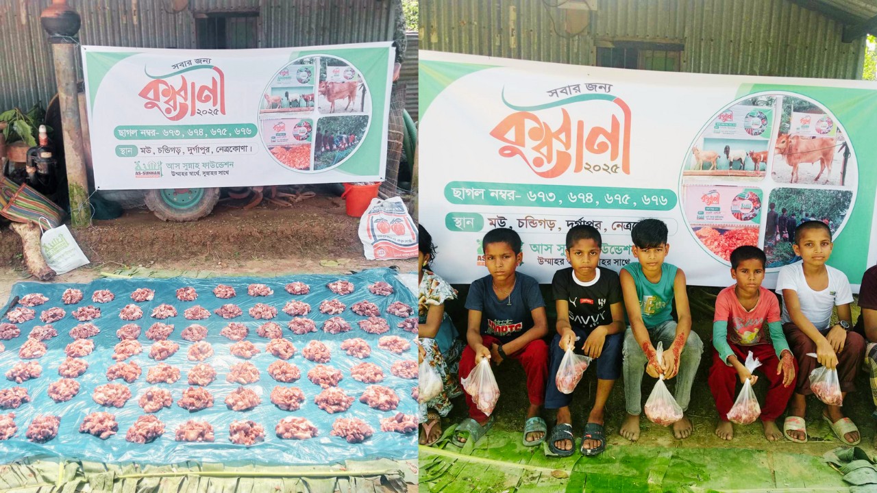 ‘‘সবার জন্য কুরবানী’’ এই প্রতিপাদ্যে নেত্রকোনার দুর্গাপুরে প্রতিবছরের মতো এবারও নও মুসলিম ও নিম্নআয়ের মানুষদের মাঝে কুরবানির মাংস বিলিয়ে দিয়ে ঈদের আনন্দ ভাগাভাগি করল আসসুন্নাহ ফাউন্ডেশন। সারাদেশের ন্যায় দুর্গাপুর উপজেলার চন্ডিগড় ইউনিয়নের মউ গ্রামে ও পৌরশহরের তেরীবাজার এলাকায় প্রায় শতাধিক পরিবারের মাঝে এ গোশত বিলিয়েছেন আসসুন্নাহ’র স্বেচ্ছাসেবকরা।